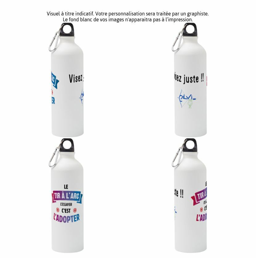 Gourde en métal avec bouchon vissé équipé d'un mousqueton.